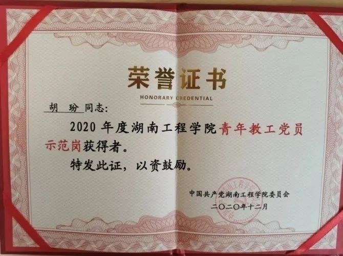 胡玢老师2008年5月在中南大学读研期间加入中国共产党,在我校工作的十三年间,胡玢老师处处以党员的标准严格要求自己。2010年5月到外国语学院大学英语第二教研室工作,7月主动担任教研室工会小组长。在担任工会小组长的九年间,她不仅自己积极参加工会组织的各项活动,而且号召教研室的老师踊跃参与,教研室2016年被评为学校优秀工会小组。