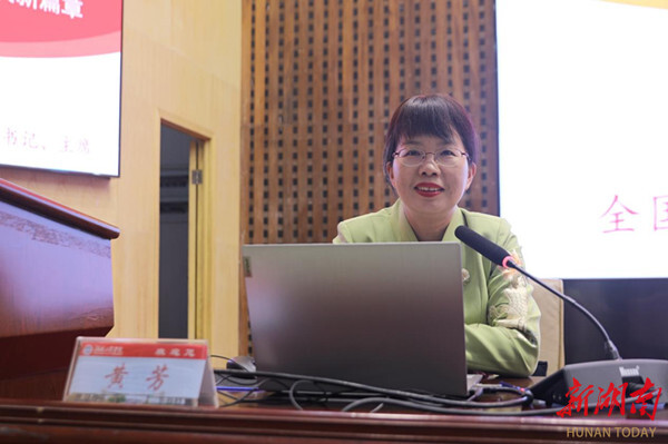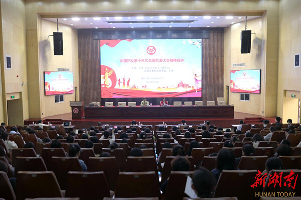 宣讲中,黄芳以“与党同心 跟党奋进 在新征程上谱写湖南妇女事业发展新篇章”为题,分享了10月23日至26日在北京召开的中国妇女第十三次全国代表大会盛况和会议期间的所见、所闻、所思、所感,重点宣讲中国妇女第十三次全国代表大会精神。现场师生纷纷表示,宣讲报告既有深度,又有高度,更有温度,大家深受教育、倍感振奋。
