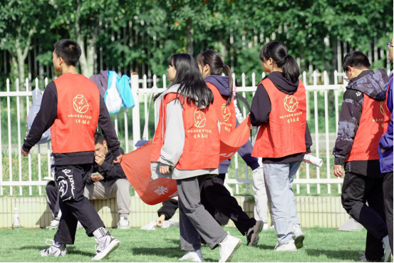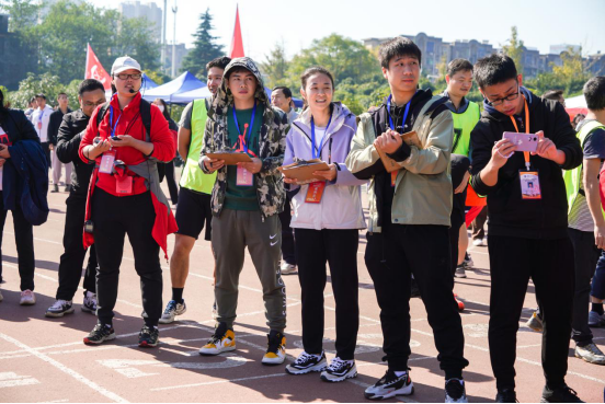 校运会的举行离不开一群默默奉献的人。白衣天使守住进入田径场的大门,对进场的运动员、观众进行体温检测,体温合格者入场;身穿各色工作服的志愿者,他们尽心、尽力营造赛场良好的比赛环境;护卫队队员以责任与担当之心,维护运动场场地秩序;各学院独具创意的垃圾桶展现了绿色环保的态度,学院加油站里为运动员们提供各种便利服务……